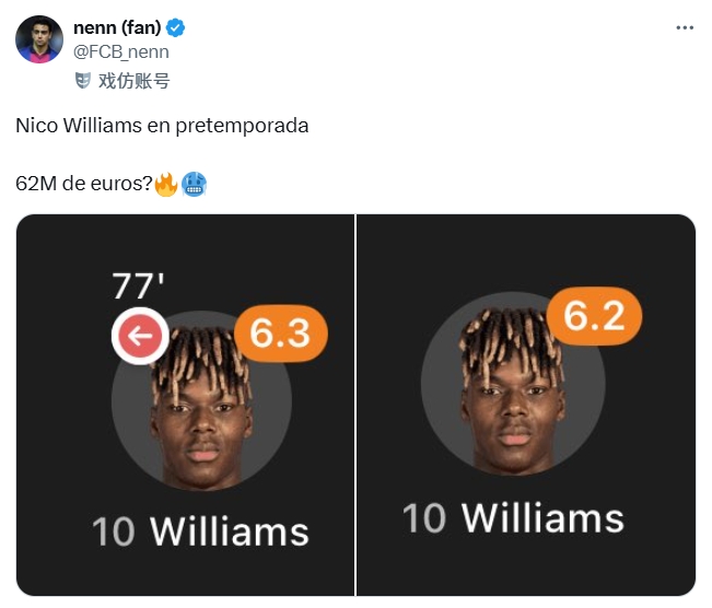 西班牙媒体eldesmarque报道,此前众多网友在社媒批评尼科与毕尔巴鄂续约后的季前赛表现,还有巴萨球迷号拿尼科与拉什福德季前赛表现对比。